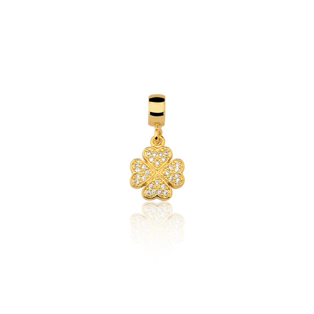 Pingente Enjoy Trevo Cravejado Banhado a Ouro 18K O Pingente Enjoy Trevo Cravejado é uma joia encantadora e simbólica, banhada a ouro 18K e cravejada para trazer um brilho extra e especial a cada momento. Com 1cm de tamanho, o trevo representa sorte e boas energias, sendo perfeito para quem deseja carregar um amuleto de proteção e positividade. Um acessório indispensável para quem adora colecionar momentos e sentimentos preciosos.