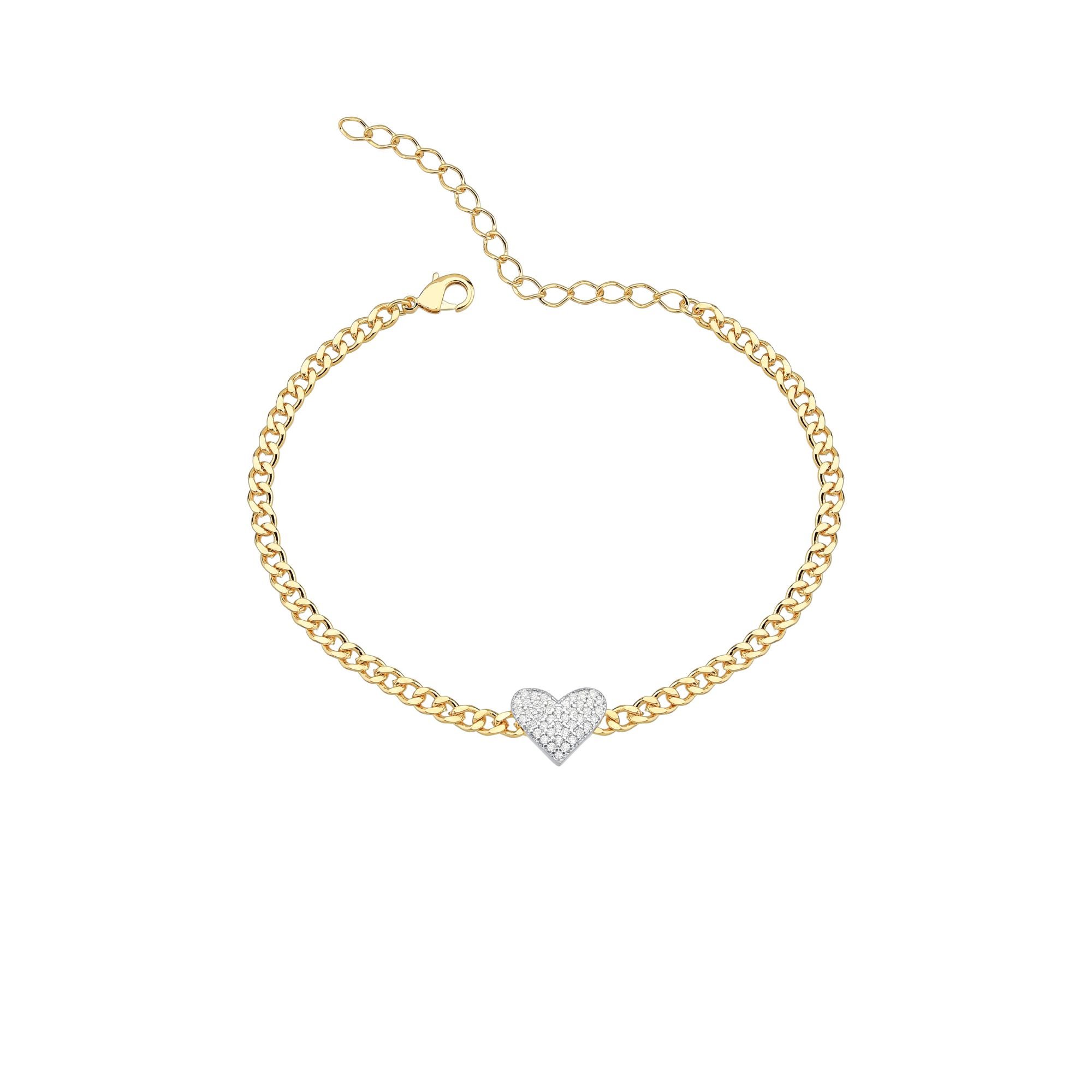 Pulseira Coração Cravejado Elo Grumet Banhada a Ouro 18K