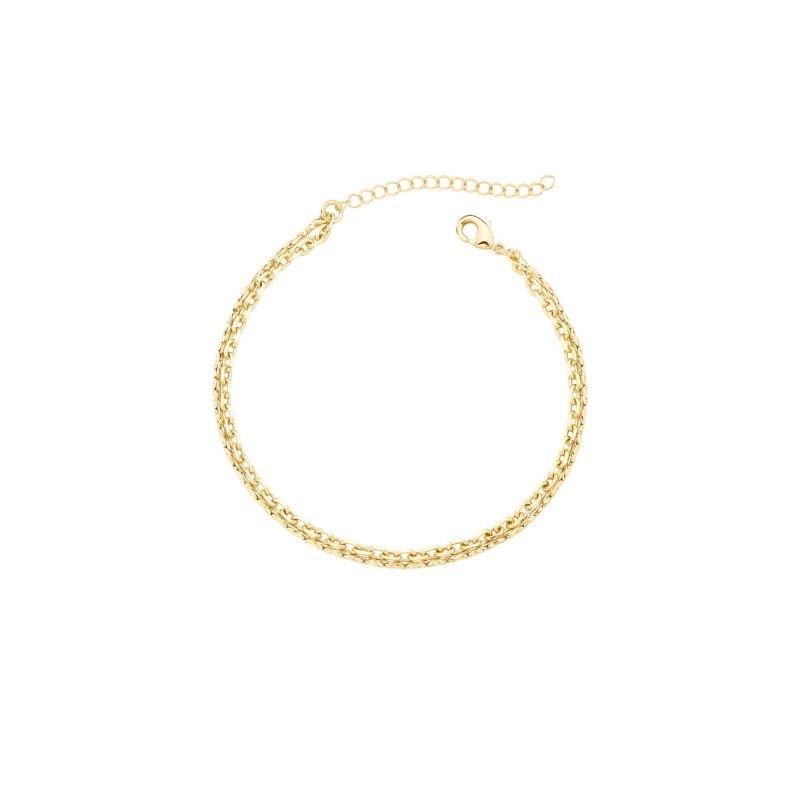 Com design imponente e sofisticado, esta pulseira traz a combinação de elos retangulares com uma corrente trabalhada, formando uma composição moderna e elegante. Banhada a ouro 18K e hipoalergênica, integra a coleção Fressen Amalfi, inspirada na sofisticação mediterrânea, perfeita para destacar produções marcantes e cheias de estilo.