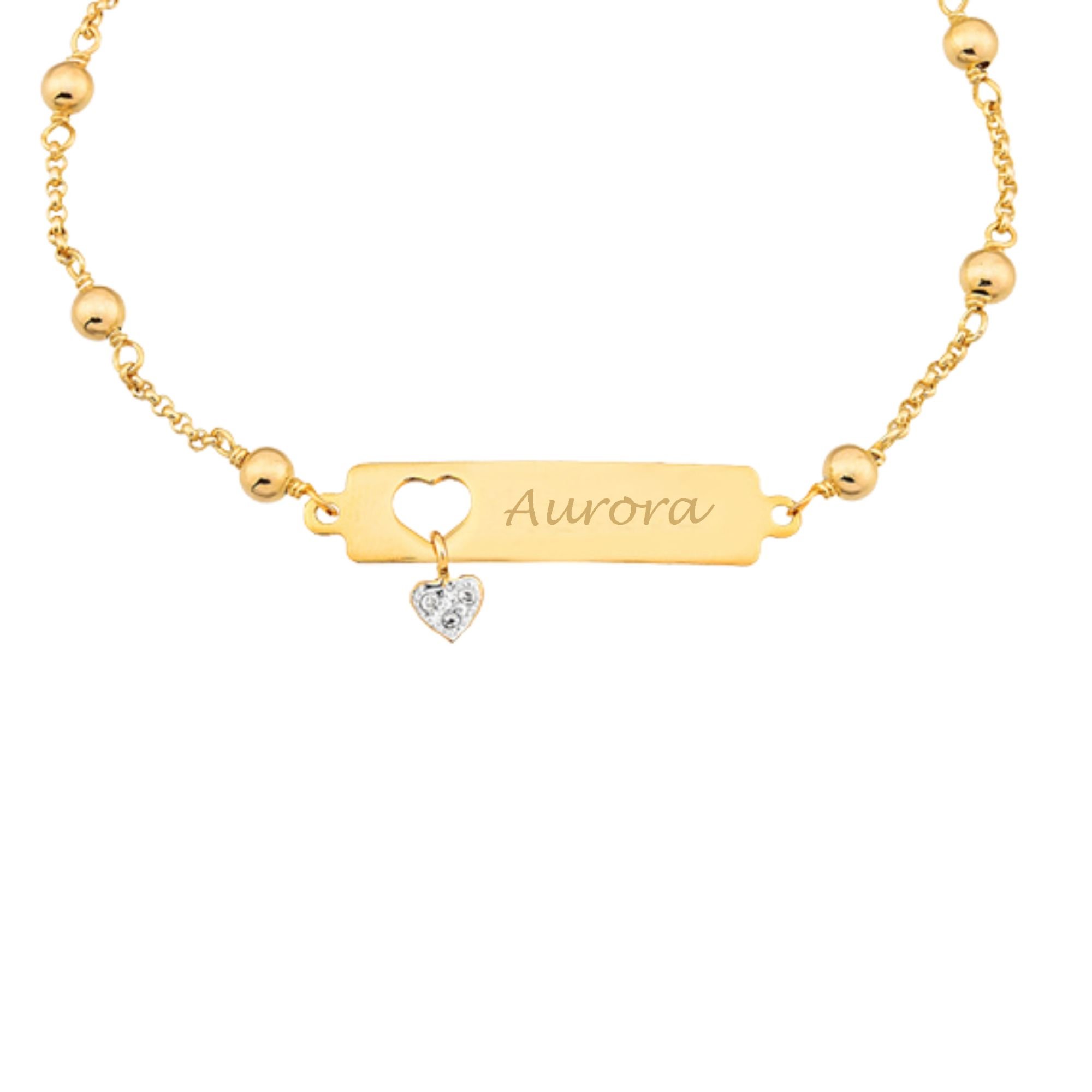 A Pulseira Infantil Melindrosa com Bolinhas banhada a ouro 18K é a joia ideal para celebrar a beleza e a delicadeza dos pequeninos. Seu design com bolinhas e coração vazado é perfeito para meninas, e a personalização com o nome da criança em uma plaquinha adiciona um toque especial. Disponível nas opções de tamanho 12cm, 13,5cm e 15cm, esta pulseira faz parte da Coleção My Collection - Pequenina, uma linha pensada com muito carinho para as joias mais preciosas na vida dos pais.