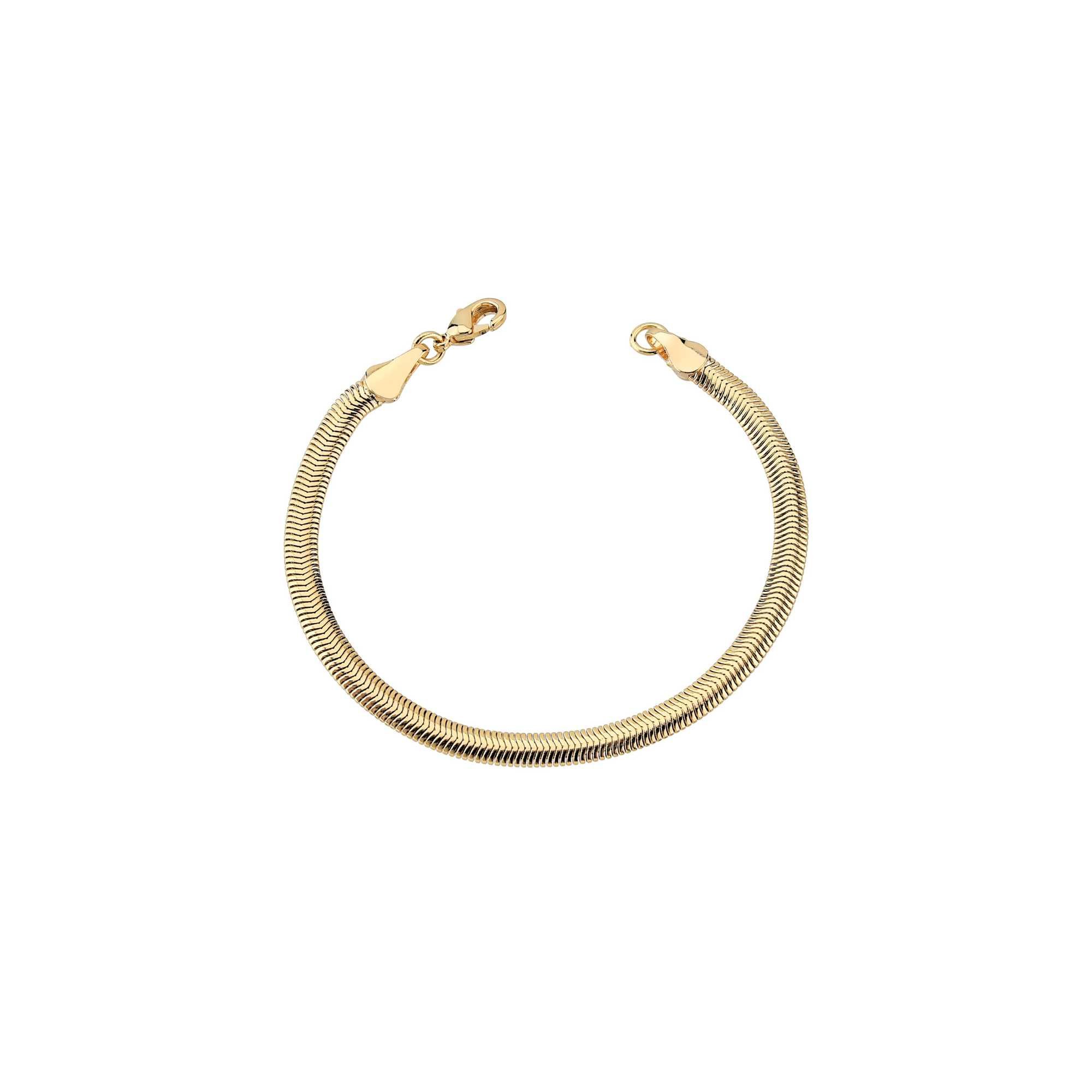 Com uma estrutura flexível e adaptável, esta pulseira de malha snake é o toque perfeito para completar qualquer look. O Banhado a Ouro 18K garante um acabamento polido de alta qualidade, tornando-a versátil e ideal para criar um mix de pulseiras.