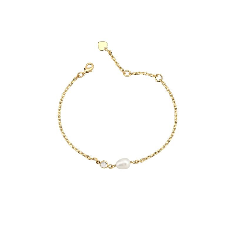 Pulseira Pérola e Ponto de Luz Banhada a Ouro 18K