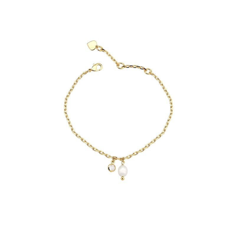 Pulseira Pérola e Ponto de Luz Banhada a Ouro 18K