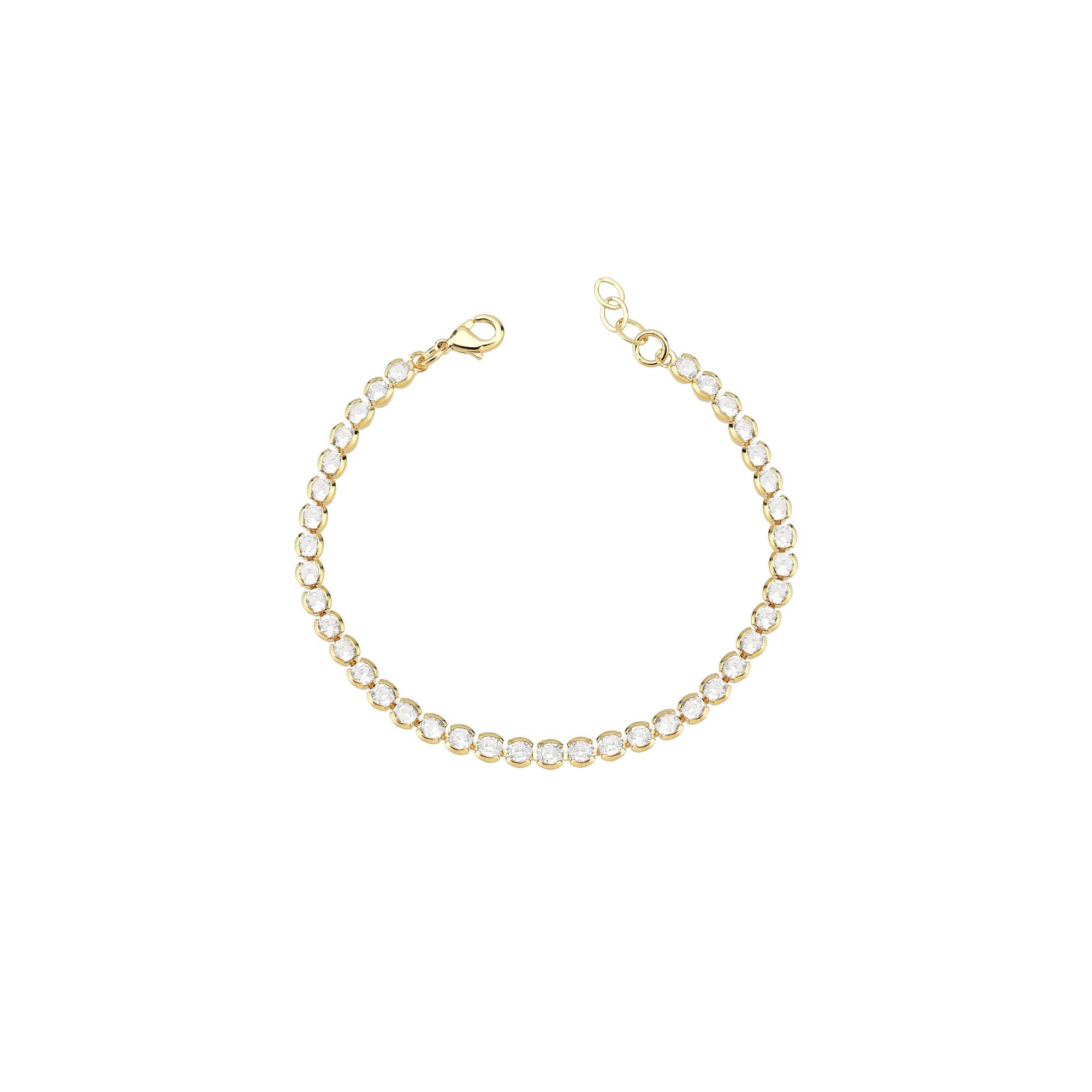 A Pulseira Riviera Redonda da coleção Fressen Mom's é uma peça elegante e sofisticada, banhada a ouro 18K, com acabamento polido. Suas zircônias cristal redondas de 3,5mm adicionam brilho e delicadeza, tornando-a ideal para celebrar o amor entre mãe e filho. Com 16cm de comprimento e extensor, é a joia perfeita para quem busca um toque de luxo e carinho em seu visual.