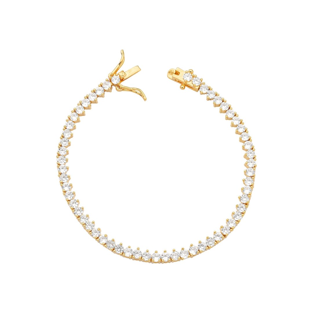 Esta delicada pulseira Riviera é cravejada com Zircônias Cristal, criando um visual sofisticado e radiante. Com acabamento polido e Banhado a Ouro 18K, é a peça perfeita para quem busca brilho e elegância em todas as ocasiões.